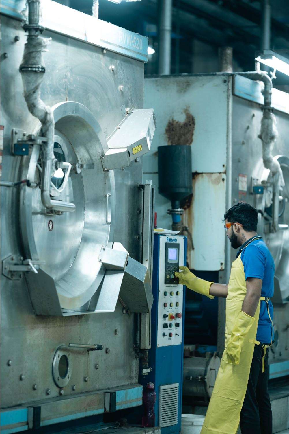 Systemdriven- automated-processes and techniques have helped us achieve advanced washing and processing techniques which consumes minimal man-made energy and recycle-reuse maximum water through our Zero Liquid Discharge system, recycling 97% of the water used limiting us to experiment with high end demands from our customers.